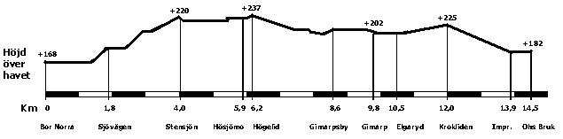 Järnvägen ligger fortfarande kvar i sin helhet på 14,5 km. Från pappersfabriken i Ohs vid sjön Ruskens sydligaste spets, stiger banan upp till en högplatå med skog och myrar. Sedan sjunker banan igen ner mot Bor (som mest med 41 promille). Stationerna längs sträckan har dock förändrats något sedan banan blev museijärnväg just för att passa dagens turistverksamhet bättre. |
