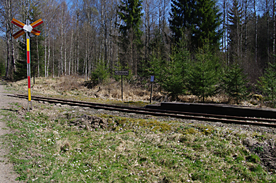 Här mitt i skogen ligger den enda mötesstationen mellan Ohs och Bor