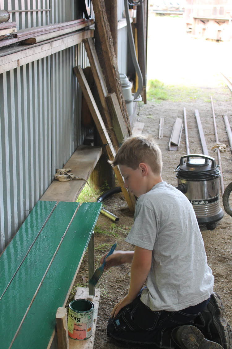 Anton målar bänkarna i vagn 51. Foto Emma Larsson |