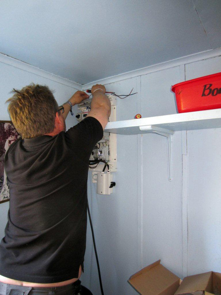 Ulrik monterar centralen i Bor stnhus. |