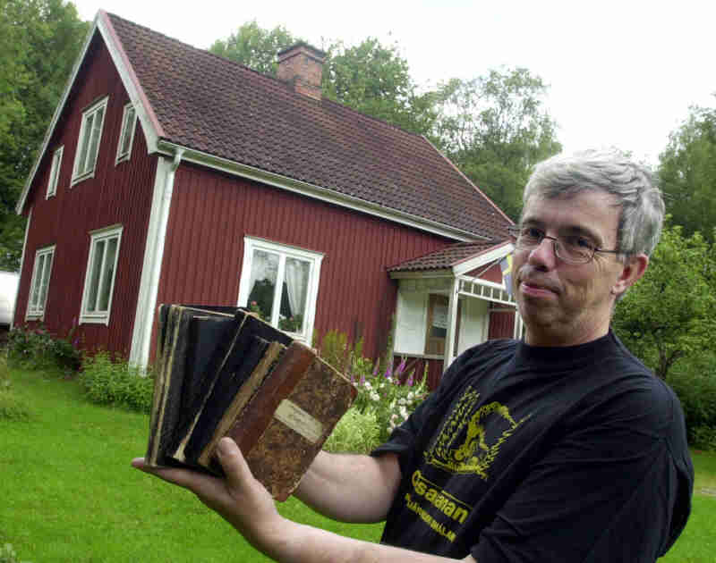 Sven-Olov Wikblom med Otto Johssons dagböcker. I bakgrunden syns