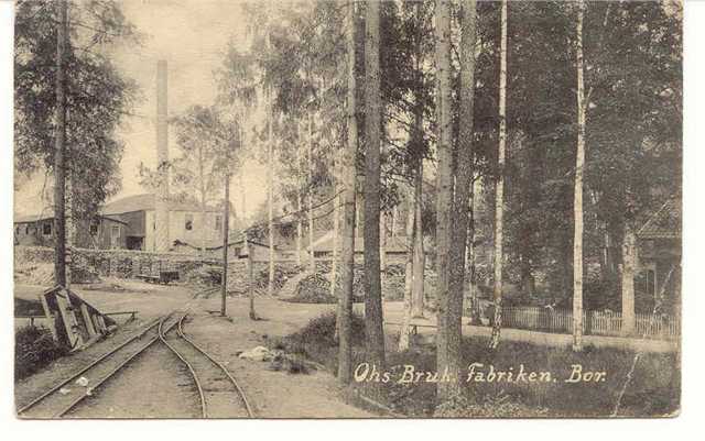 Fabriken i Ohs 1910. På spåret till vänster står en tvåaxlig HRRJ
