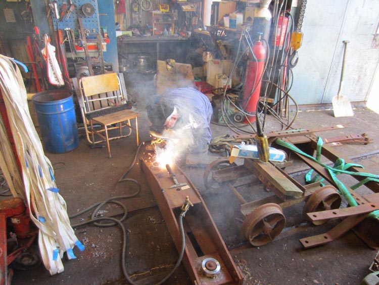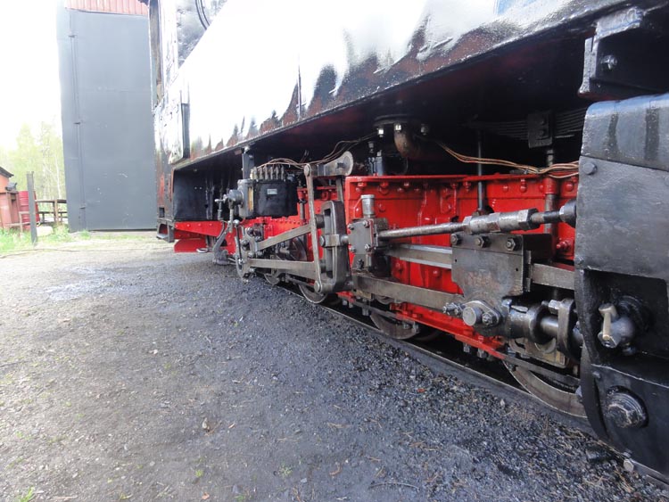 Här arbetas det med boggiens fjädring, den har slamrat något vilket man nu ska bygga bort.