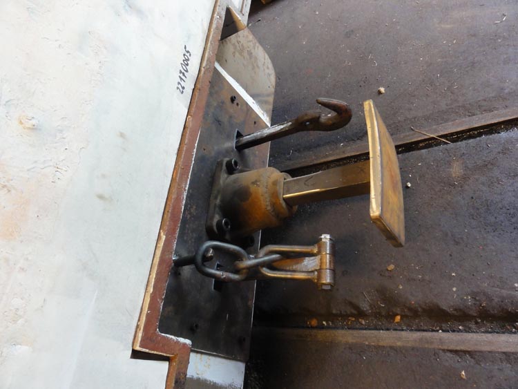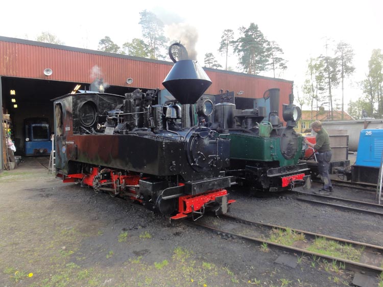 Fredagen den 13:e april var det panninspektion som utförs av inspekta. Det görs två inspektioner först en kall och sedan en under tryck som sker senare under sommaren. Det enda han hade att anmärka på var att Smedjebacken takstag börjar få lite midja mot fyrboxtaket. Detta är inget allvarligt men framtida besiktningar kommer att granska dessa noggrant. Inspektören synade även Polackens panna och vi diskuterade lite hur arbetet med att renovera den ska utföras. Den gamla spolpluggen under rundpannans botten ska skäras bort och hålet ska svetsas igen med en ny bit 15 mm tryckkärlsplåt. Och den nya spolpluggen som Jonas har gjort kommer att svetsas dit i nederkanten på främre tubgaveln. Man har också monterat de nya rosterna i Tyska loket, det blev mycket bra. Det har även riktats och förstärkts på asklådeluckorna som deformerades under Tomtetågen. De nya spolpluggarna är även monterade, de passade väldigt bra i hålen.
