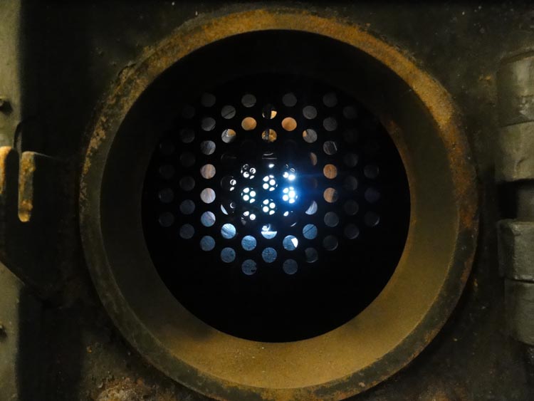 Här kan man se hur pannan ser ut inifrån. Bilden tagen framifrån och man ser fyrboxen som hänger i sina stagbultar.